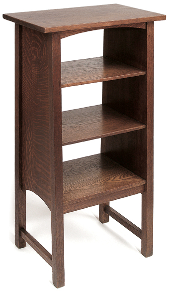 Harvey Ellis design. Excellent original medium brown finish. Very slight stains to top; otherwise, very good condition. Signed with red decal and partial paper label. 42" h x 21" w x 13" d. EST. $1000. - $1500. |