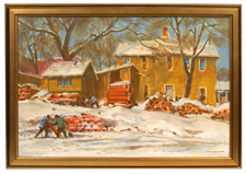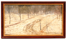 Carl John Zimmerman (Cincinnati, Ohio, 1900-1985) 20" x 30" oil on canvas of a winter scene. Signed lower right "Carl Zimmerman". Carl Zimmerman was born in Indianapolis, Indiana. He studied at the Herron School in Indiana, the Academy of Art in Chicago and the Art Academy of Cincinnati under Grooms, Weis and Wessel. He settled in Cincinnati and taught at the Cincinnati Art Academy. Cincinnati artist well known Cincinnati for his genre portraits and mural paintings. Well listed artist. Fine condition. EST. $500. - $1000. SOLD $825 |