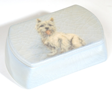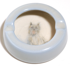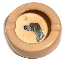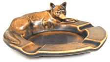 ROOKWOOD HIGH GLAZE ASH TRAY WITH DOG BY FLORA KING |
