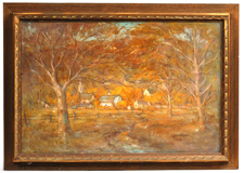 Charles Alfred Meurer (Terrace Park, Cincinnati, Ohio, 1865-1955) 6" x 8" oil on board landscape painting. Signed lower right "C.A. Meurer" and dated "1935". Meurer studied with Duveneck, Noble and Meakin at the Cincinnati Art Academy and in Paris with Laurens, Constant, Ferrier and Doucet. He was a member and on the board of directors of the Cincinnati Art Club. He maintained a studio in Terrace Park for many years. Well listed artist. Fine condition. EST. $300. - $600. SOLD $550 |