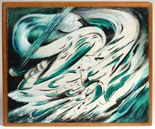 Ida Barbour Carmichael (Cincinnati, Ohio, 1881-1981) 16" x 20" oil on board titled "The Swan of Tuoni" from the Kaleuala theme, Rune XIV. Signed lower right "Ida Carmichael". This painting is from the Ida Carmichael Estate, accompanied with a letter from family. The painting was exhibited at the Loring Andrews-Ratterman Gallery in Cincinnati, Ohio in 1963. Ida Carmichael graduated from the New England Conservatory of Music, Boston in 1904. She received a masters degree from the University of Cincinnati and Doctors of Education from the University of Oregon in 1945. She studied at the Cincinnati Art Academy with Reginald Grooms, Clement Barnhorn and Herman Wessel. Her work has been exhibited at the Cincinnati Art Museum, Closson's Galleries, Butler Art Institute, Ohio Valley Art & Watercolor Show, Loring Andrews Galleries, etc. She taught at the Walnut Hills High School from 1930 to 1951. Dr. Carmichael was a member of the Women's Art Club of Cincinnati, the National Society of Modern Art and the Ceramic Guild of Cincinnati, as well as various other local and national associations. Fine condition. EST. $1000. - $2000. SOLD $1,320 |