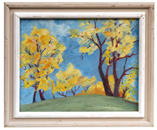 Ida Barbour Carmichael (Cincinnati, Ohio, 1881-1981) 8" x 10" landscape painting on masonite. Signed lower right "I. Carmichael". This painting is from the Ida Carmichael Estate and accompanied with letter from family. Ida Carmichael graduated from the New England Conservatory of Music, Boston in 1904. She received a masters degree from the University of Cincinnati and Doctors of Education from the University of Oregon in 1945. She studied at the Cincinnati Art Academy with Reginald Grooms, Clement Barnhorn and Herman Wessel. Her work has been exhibited at the Cincinnati Art Museum, Closson's Galleries, Butler Art Institute, Ohio Valley Art & Watercolor Show, Loring Andrews Galleries, etc. She taught at the Walnut Hills High School from 1930 to 1951. Dr. Carmichael was a member of the Women's Art Club of Cincinnati, the National Society of Modern Art and the Ceramic Guild of Cincinnati, as well as various other local and national associations. Fine condition. EST. $100. - $300. SOLD $220 |