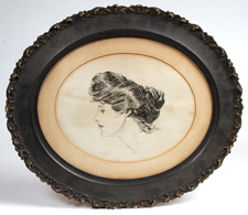 Signed "ERH '04 ofle? C.D. Gibson". Attributed to Charles D. Gibson, famous illustrator of the "Gibson Girls". Original frame. 10 1/2" x 13". EST. $300. - 500. SOLD $99 |