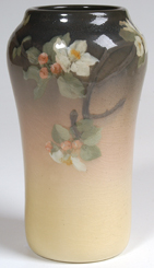 Great floral decorated vase by one of Rookwood's leading artist. Dated 1930. Shape #2544. X'd for minor glaze imperfections, otherwise fine condition. 8" h. EST. $1000. - $2000. SOLD $1,650 |