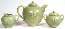 ROOKWOOD GREEN HIGH GLAZE TEA SET WITH SHIPS |