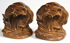 PAIR OF ROOKWOOD SHIP BOOKENDS W/BROWN MAT GLAZE |