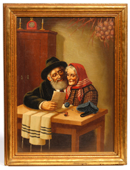 Well done 16" x 12" oil on canvas painting of elderly couple. Signed right margin "Hor" and also signed and dated "1955" on back of canvas. Purchased from David & Katherine Glover, Glendale, Ohio. Fine condition. EST. $100. - $300. SOLD $154 |