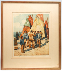 T.F. Simon (Czechoslovakia, 1877-1942) 14" x 12" colored block etching. Titled "Concarneau, Brittany". Pencil signed lower right "T.F. Simon" and numbered on left "74". Listed artist. Fine condition. EST. $100. - $200. SOLD $209 |