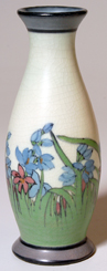 Fine example with blue floral decoration on a lovely pink background. Dated 1924. Shape #954. "V" for vellum and artist's initials are inscribed. 5 1/8" h. EST. $450. - $650. SOLD $577.50 |