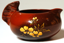 Floral decorated and butterfly handle. Dated 1887. Shape #329. Artist's initials are incised. Professional repair to handle. 3" h x 4 1/2" w. EST. $250. - $450. SOLD $143 |