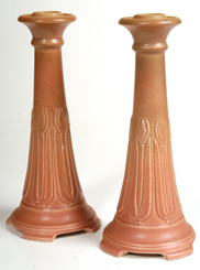 PAIR ROOKWOOD MAT GLAZE CANDLESTICKS |