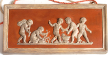 Cupids in relief. Signed "Matt Morgan Art Pottery Co. Cinti. O." on back. Fine condition. 6" h x 11 5/8" w. EST. $200. - $300. SOLD $176 |