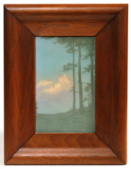 Titled "Edge of the Cliff". Dated 1916. Beautiful scenic plaque with trees and white mountains in background. Signed by artist in lower right of front. Crazing, otherwise fine condition. 8" x 5". EST. $2000. - $3000. SOLD $3,520 |