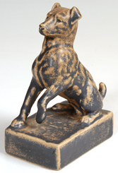 ROOKWOOD DOG PAPERWEIGHT WITH BLUE OVER BROWN MAT GLAZE |