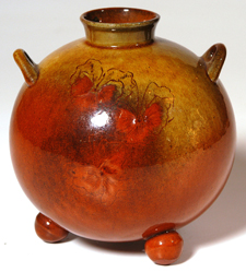 Footed pot with double handles and floral decoration. "Rookwood" in block letters and "1886". Shape #71A. Fine condition. 5" h. EST. $300. - $500. SOLD $467.50 |