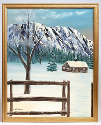 Late 20th Century 20" x 16" oil on canvas. Titled "Cabin in Mountains - Winter Scene". Signed lower left "C. Williamson". Fine condition. EST. $50. - $100. SOLD $27.50 |