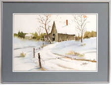 Ray Loos (Cincinnati, Ohio, 1919-1996) 14" x 21" watercolor. Titled "Snow Lane". Signed lower right "Loos". Ray Loos was born in Harrison, Ohio. He graduated from the Central Academy of Commercial Art in Cincinnati. He was a member and past president of the Cincinnati Art Club, honorary life member of the Central Ohio Watercolor Society, charter member of the Ohio Watercolor Society and associate member of the American Watercolor Society. Mr. Loos operated Loos Commercial Art Studio in downtown Cincinnati. His paintings have been purchased for many top corporate collections including IBM and General Electric. Fine condition. EST. $100. - $300. SOLD $247.50 |