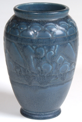ROOKWOOD BLUE MAT GLAZE VASE W/MOLDED DESIGNS |