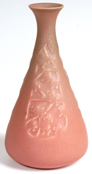 ROOKWOOD PINK MAT GLAZE VASE W/MOLDED DESIGNS |