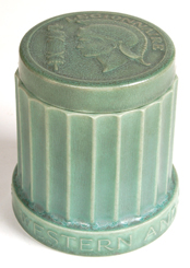 Legionnaire with soldier on lid. Western and Southern Legion around base. Western Southern insignia on bottom. Dated 1934. Fine condition. 3 1/2" h. EST. $150. - $250. SOLD $198 |