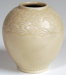 ROOKWOOD IVORY MAT GLAZE VASE W/MOLDED DESIGNS |
