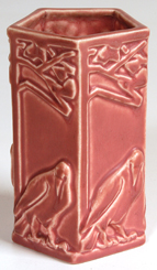 ROOKWOOD MAUVE MAT GLAZE PENCIL HOLDER W/MOLDED ROOKS |