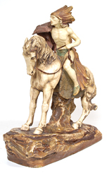 LARGE AUSTRIAN PORCELAIN FIGURE OF INDIAN ON HORSEBACK |