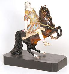 Wonderful handpainted figure of August III on horseback. Marked with crossed swords. Repaired arm, crack in tail and replaced base. 19" h x 18" w. EST. $1000. - $2000. SOLD $2,860 |