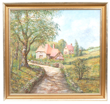 A.E. GRAU LANDSCAPE W/COTTAGES OIL PAINTING |
