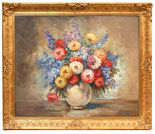 20th Century 24" x 30" oil on canvas still life painting. Titled "Garden Gems". Signed lower right "G.H. Williams". Fine condition in original frame. EST. $200. - $500. SOLD $220 |