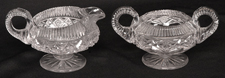 CUT GLASS CREAMER & SUGAR WITH PEDESTAL BASES |