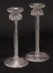 PR. CUT GLASS CANDLESTICKS WITH AIR TRAP STEMS |