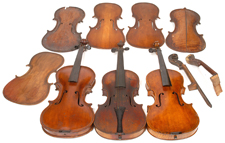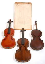 One Smith is dated 1924 and the other is not dated. Other is signed "Jacobus Stainer". Also two bows and misc. parts. EST. $200. - $300. SOLD $176 |