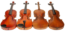 THREE VIOLINS BY CARRIE E. SMITH, LONDON, OH. |