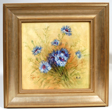 ROY HOOK, WELLER ARTIST, HANDPAINTED PORCELAIN TILE W/FLOWERS |